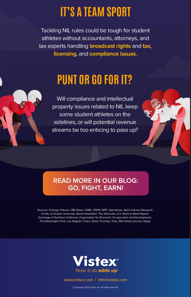 Vistex. (2022). Student athletes and NIL opportunities [Infographic]. Vistex. https://www.vistex.com/infographics/Student-Athletes-and-NIL-Opportunities.pdf